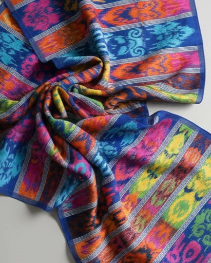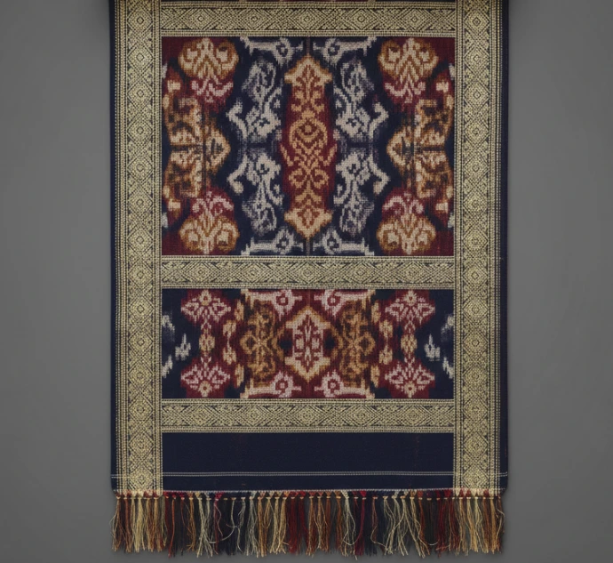 Kain Endek motif Patra yang elegan, berasal dari sentra tenun tradisional Bali di Kabupaten Gianyar. Terinspirasi dari keindahan bentuk tumbuhan seperti daun, bunga, dan sulur-suluran, motif klasik ini merepresentasikan harmoni antara manusia dengan alam. Sebuah mahakarya budaya yang mengubah inspirasi alam menjadi kain penuh makna.